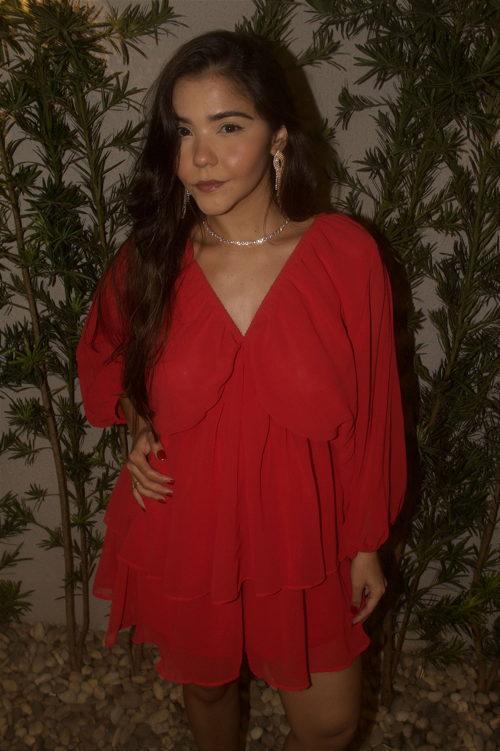 É confeccionado no tecido chiffon, leve, delicado e com movimento lindo.